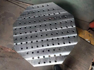 三維八角平臺(tái)是三維柔性組合工裝夾具系統(tǒng)的基礎(chǔ)平臺(tái),分為D28和D16兩種。D28系列平臺(tái)孔距100mm,平面刻有100X100的網(wǎng)格線,D16系列平臺(tái)孔距為50mm,刻有50X50的網(wǎng)格線,方便工件目視檢測(cè)。根據(jù)用戶要求,在平臺(tái)的兩直角邊上面可以刻畫毫米標(biāo)度尺。