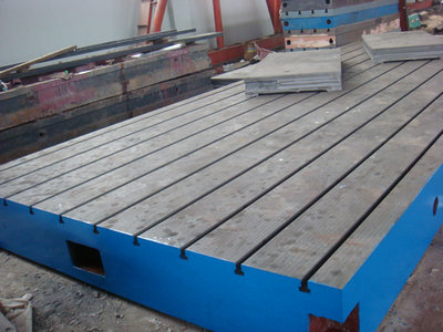 T型槽平臺(tái)(鑄鐵T型槽平板)的工作面采用刮削工藝,工作面上可加工V形、T形、U形槽和圓孔、長(zhǎng)孔等,可用來(lái)固定動(dòng)力機(jī)械設(shè)備。